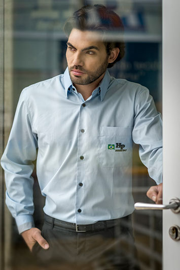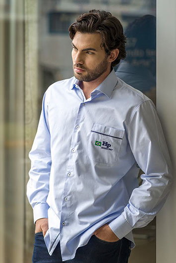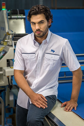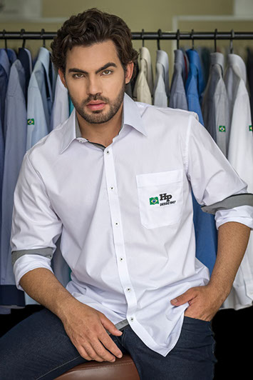 A marca HP Work oferece um leque variado de modelos, tecidos e cores de camisas para homens e mulheres, que são personalizadas de acordo com a necessidade do cliente. A personalização inclui desde a escolha do tecido e do modelo até a definição dos detalhes de cada peça e do bordado da logomarca do cliente.